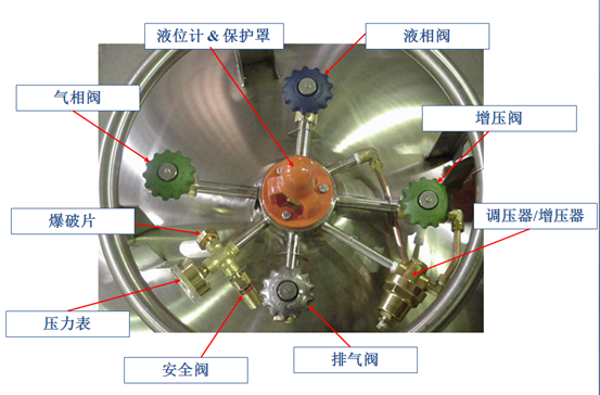 然后加入液氮后測重,一立升液氮重為0.8公斤加上空罐的重量得出滿罐時的重量,減去使用過后現(xiàn)有秤重,就是應(yīng)補充的的容量??梢杂脤S玫囊何怀邷y液位,另一種簡便的方法是找一根干凈的木棒插入液氮內(nèi)數(shù)秒鐘,將木棒迅速取出暴露在空氣中,插入液氮的部份因溫度低而結(jié)成白霜,很易容檢測罐內(nèi)液氮的存量。